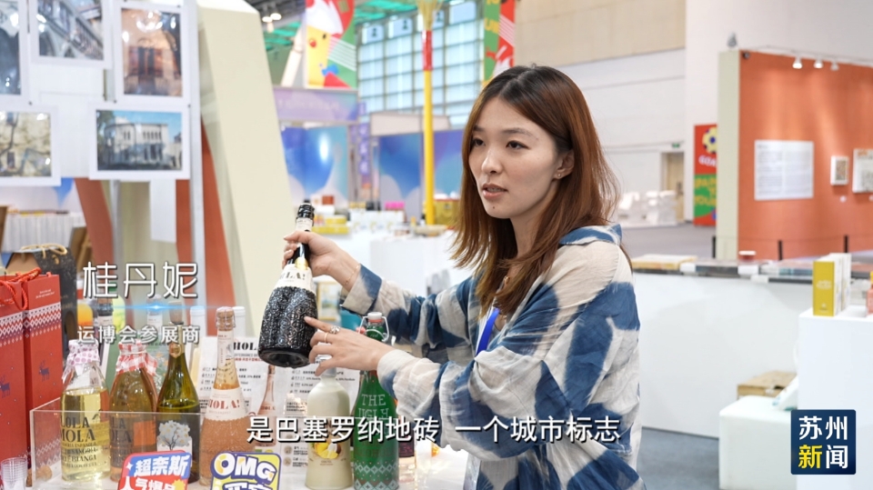 运博会参展商桂丹妮介绍,这次主要是为了展示一些西班牙当地的文化,比如Cava酒瓶身花纹是巴塞罗纳地砖,一个城市标志,是特别具有文化特色的一款酒。