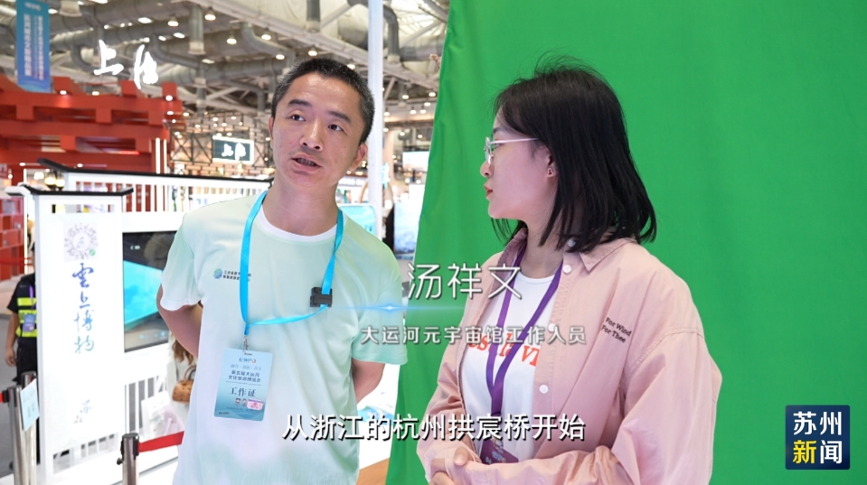 大运河元宇宙馆工作人员汤祥文介绍,通过实景复刻大运河全流域的六省二市,选取了13段的点位,从南到北,从浙江的杭州拱宸桥开始,顺着苏州宝带桥、苏州平江历史文化街区,一直到首都北京的通惠河通州段,呈现它的沿线风光和一些重要的文化遗产点位。