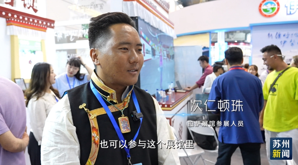 拉萨馆参展人员次仁顿珠说:“欢迎苏州的朋友来林周和拉萨旅游,也可以参与这个展馆里,了解一下西藏的特产。”