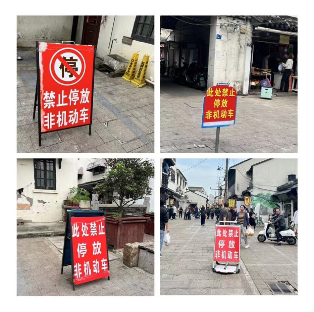 走进老街,随处可见“禁止停放非机动车”警示牌。原来,在改造前,不少市民为了采买方便,时常直接将电瓶车骑入横街,并随意停放在路边,造成拥堵,影响市容市貌。