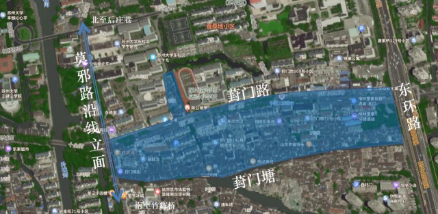 葑门横街位于苏州古城东侧,西起莫邪路,东接石炮头路至东环路,北侧接葑门路,南临葑门塘(河),全长750余米。