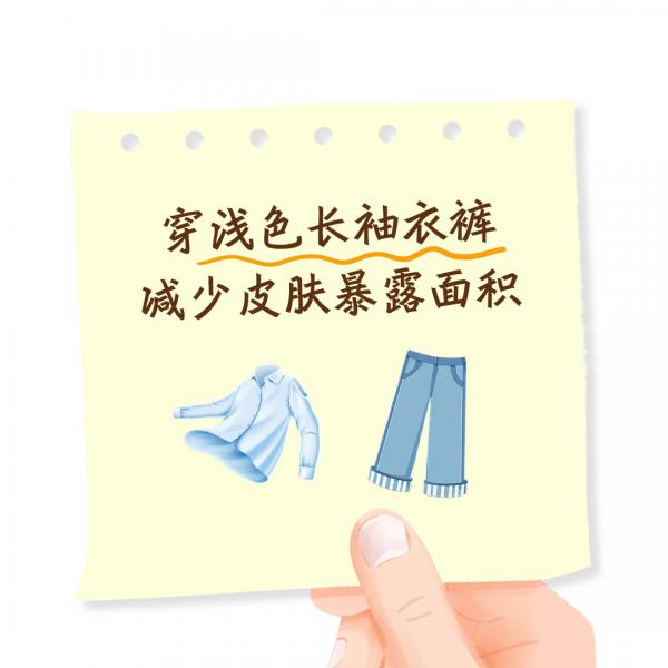 减少蚊媒活动高峰期(上午6点到8点,下午5点到7点)的户外逗留时间,尽量穿着浅色、宽松的长袖衣裤,减少皮肤暴露。