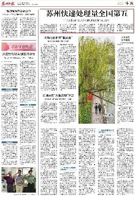 苏州快递处理量全国第五 前2月处理12.32亿件 同比增14.93%