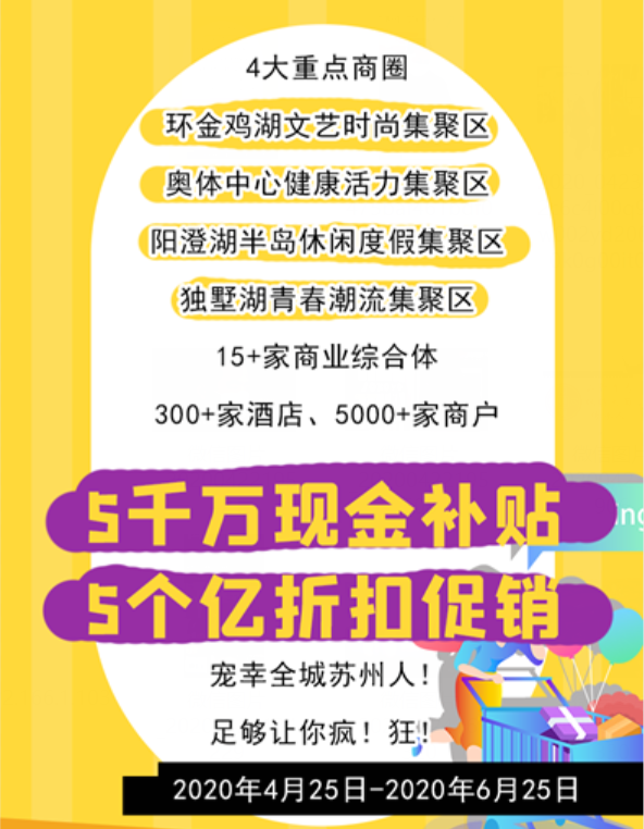 5千万现金补贴,5个亿折扣促销!记者了解到,“姑苏八点半”之“非凡园区YE”暨第四届金鸡湖旅游购物节活动,已经进入倒计时。