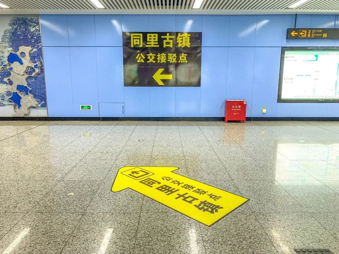 同里地铁站位于吴江区同津大道。站内里里外外好像都能看到一句广告语:同里欢迎你。还没出站就有醒目标语指引你换乘接驳。