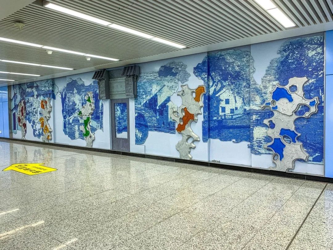 站内的壁画浮雕颜值爆表,描绘的是同里古镇风物。