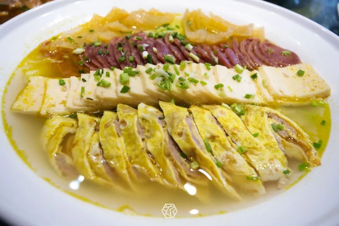 蒸四鲜,颜色鲜艳、造型别致,看似清淡,入口之后却是各种鲜味同时绽放于味蕾。