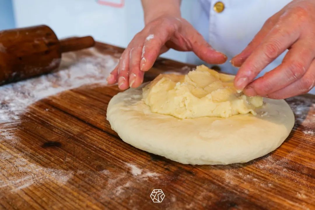 苏式月饼之所以皮层酥松,酥层清晰可见,是因为在擀面的过程中加入了大量的油酥。