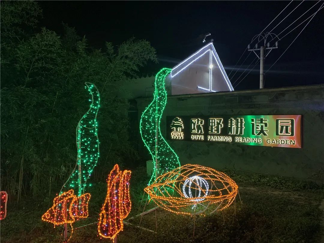 在欧野耕读园内,在科技感灯光、水雾、特殊造型的氛围营造下,雾化拱门、水母灯、北极之光、流浪地球、水幕秋千、呼吸之光、呐喊喷泉、光波鼓、地板钢琴、圆舞曲、巨型发光月球、月亮秋千及发光跷跷板等13个网红项目,让市民们体验了集美食美景美人美物为一体的网红文旅狂欢。