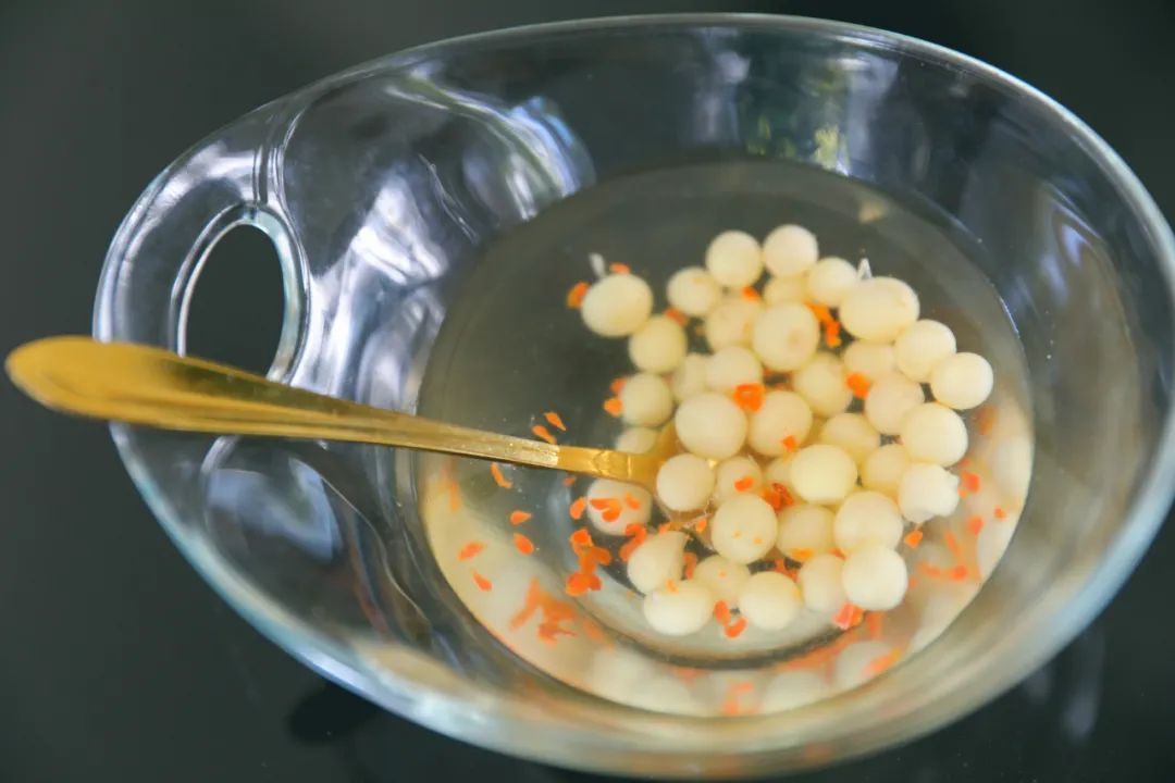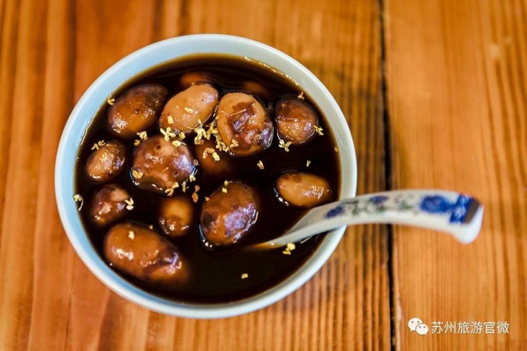 鸡头米,清新怡人的真醇之味,是苏州人最喜爱的秋季美食之一。鸡头米只需清水煮沸,撒上一点冰糖,再加一些干桂花,即可成就一碗桂花鸡头米。那种柔糯清香,常吃不厌。