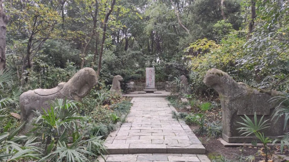 文徵明纪念园外围的圆形花坛直连文徵明墓地,墓道长28.5米像一支毛笔,牌坊像一个笔架,前面一方池塘像一个砚台,体现出文人对文化的毕生追求。文徵明墓地