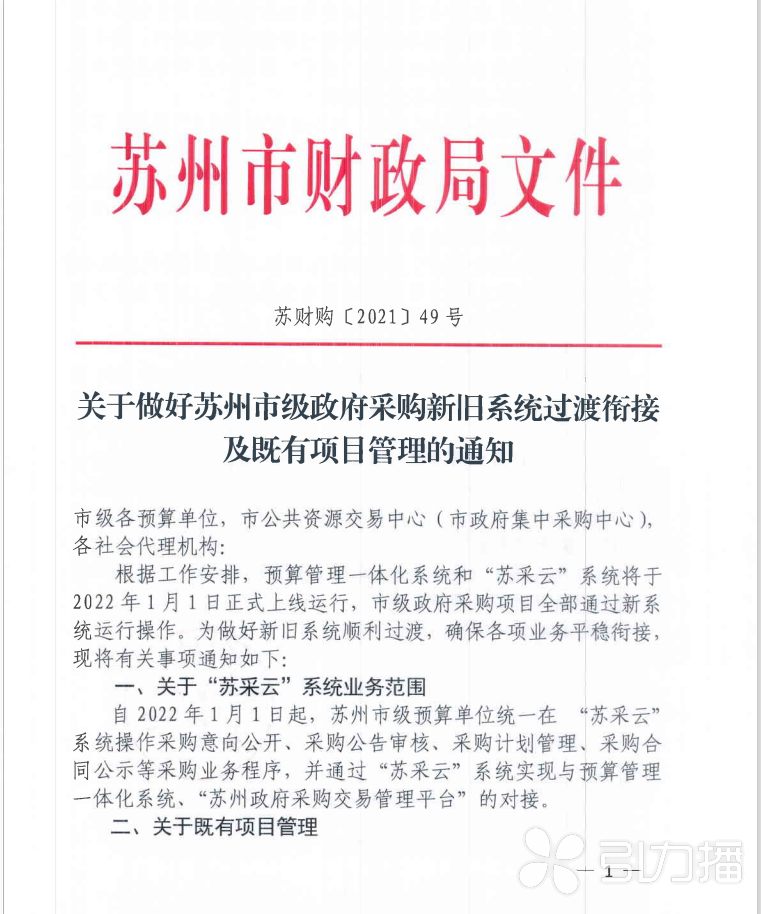 据介绍,自今年1月1日起,苏州市级预算单位统一在“苏采云”系统操作采购意向公开、采购公告审核、采购计划管理、采购合同公示等采购业务程序,并通过“苏采云”系统实现与预算管理一体化系统、“苏州政府采购交易管理平台”的对接。