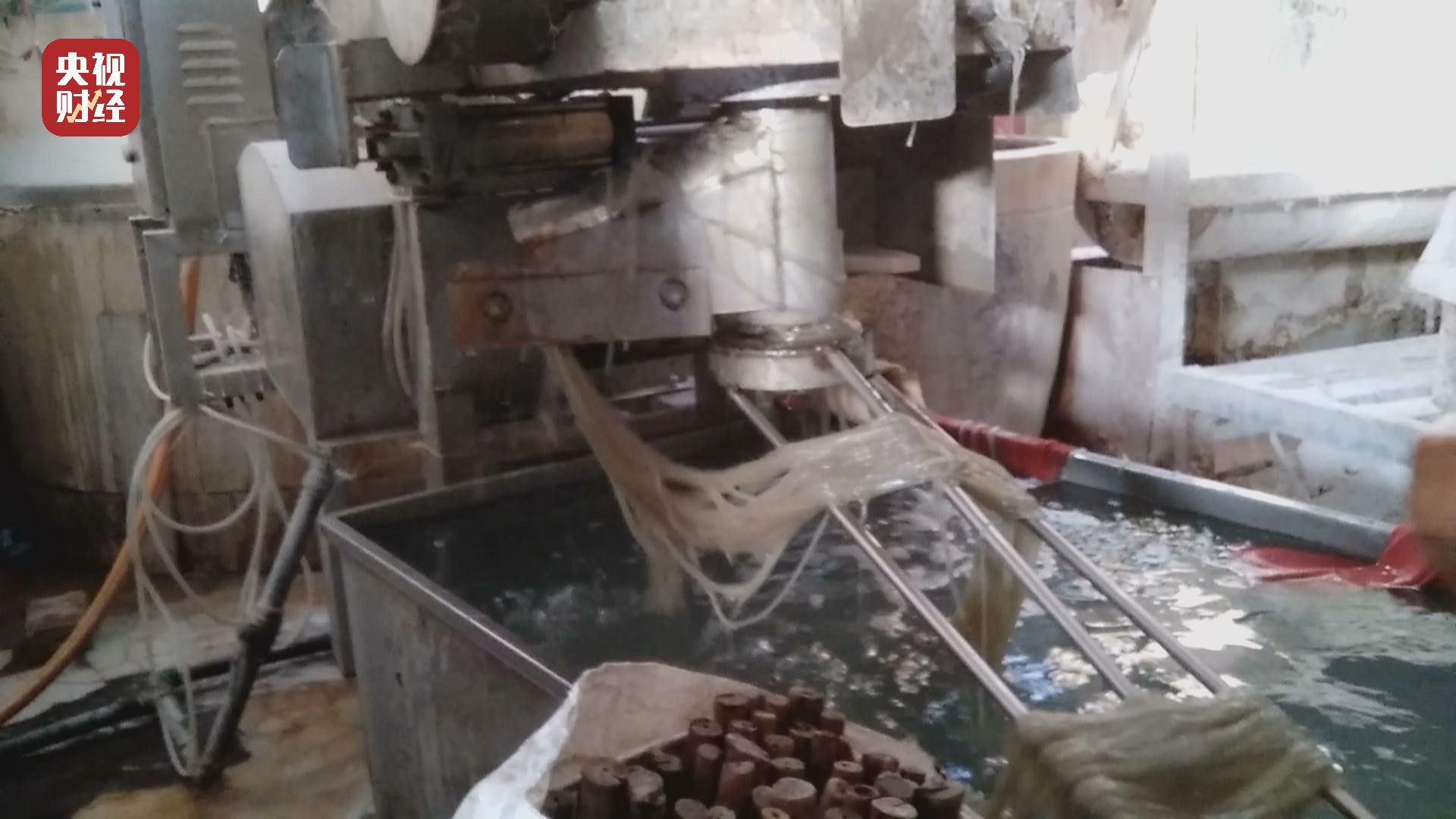 生产车间在一个简陋的民房里,现场脏乱,加工粉条的机器上布满了污渍,有的地方已经生锈,生产工人直接裹着编织袋或者塑料布干活。