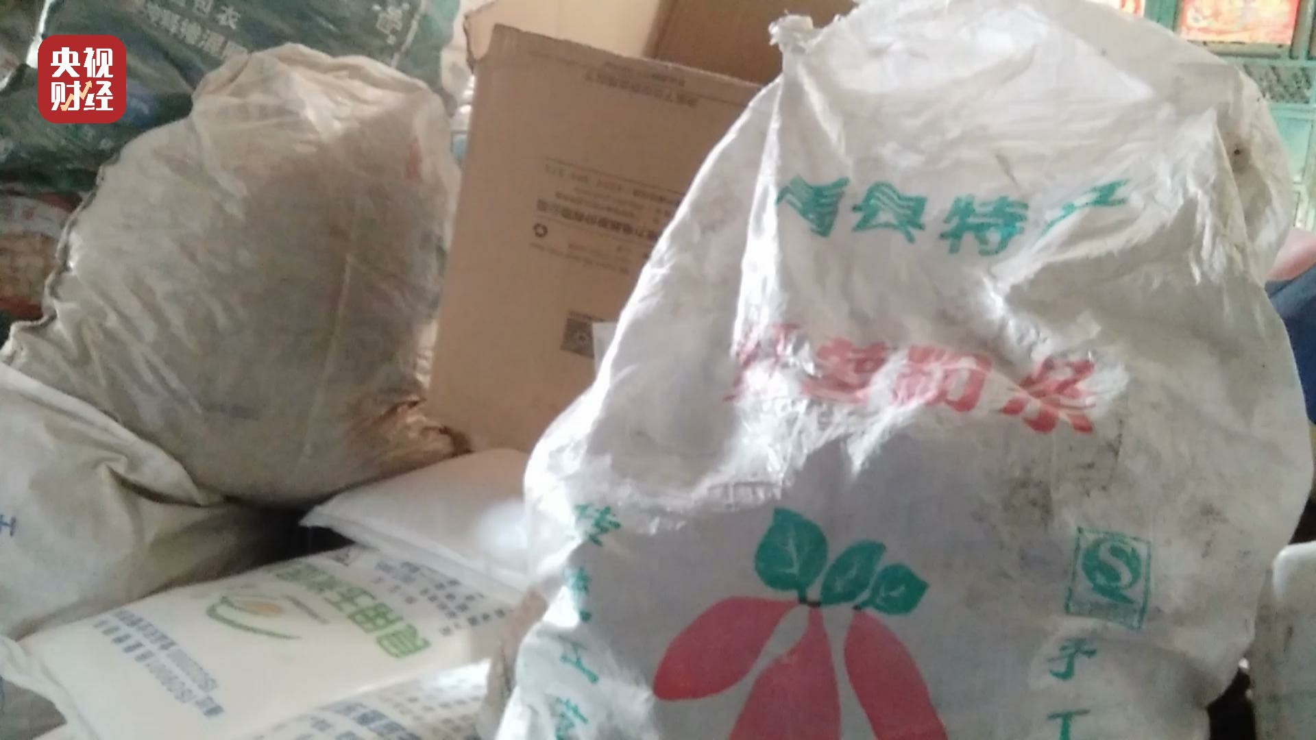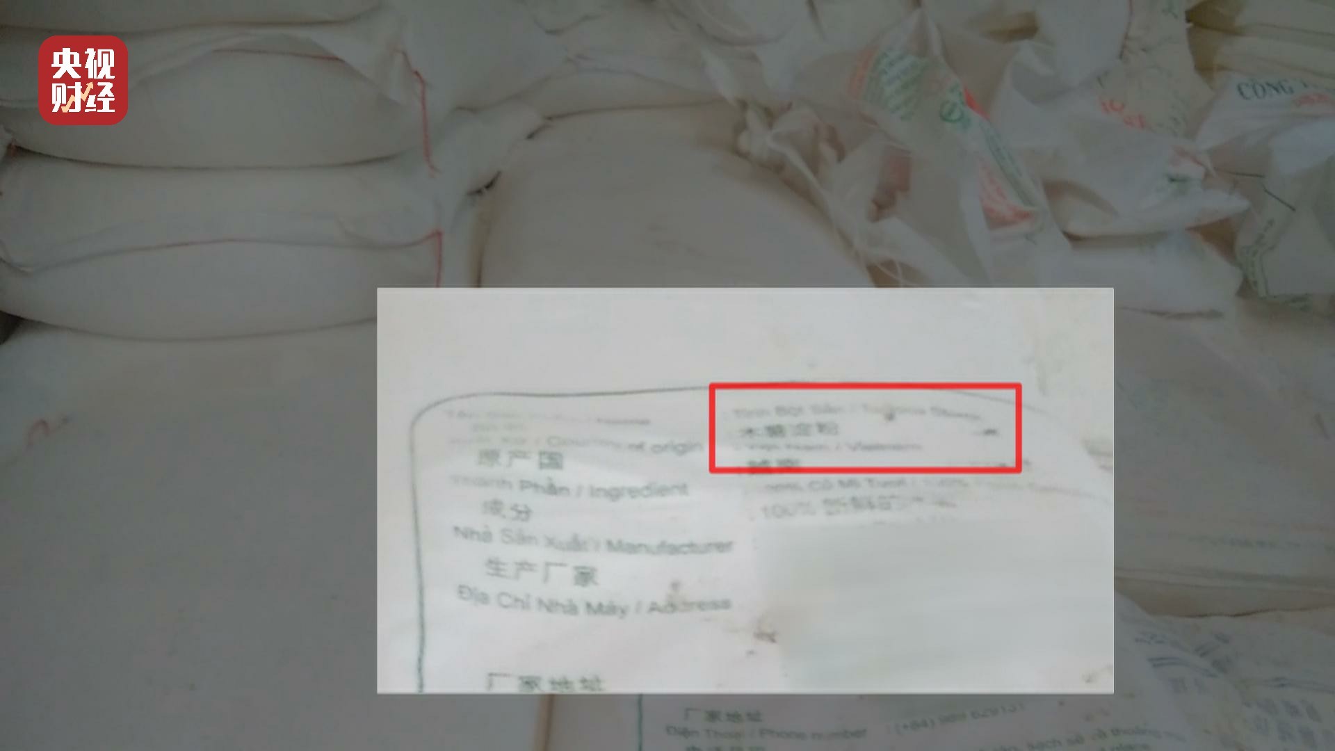 在一个狭长的过道摆满了一袋袋淀粉,上面标注着木薯淀粉。老板坦承,这就是他们生产红薯粉条的原料。