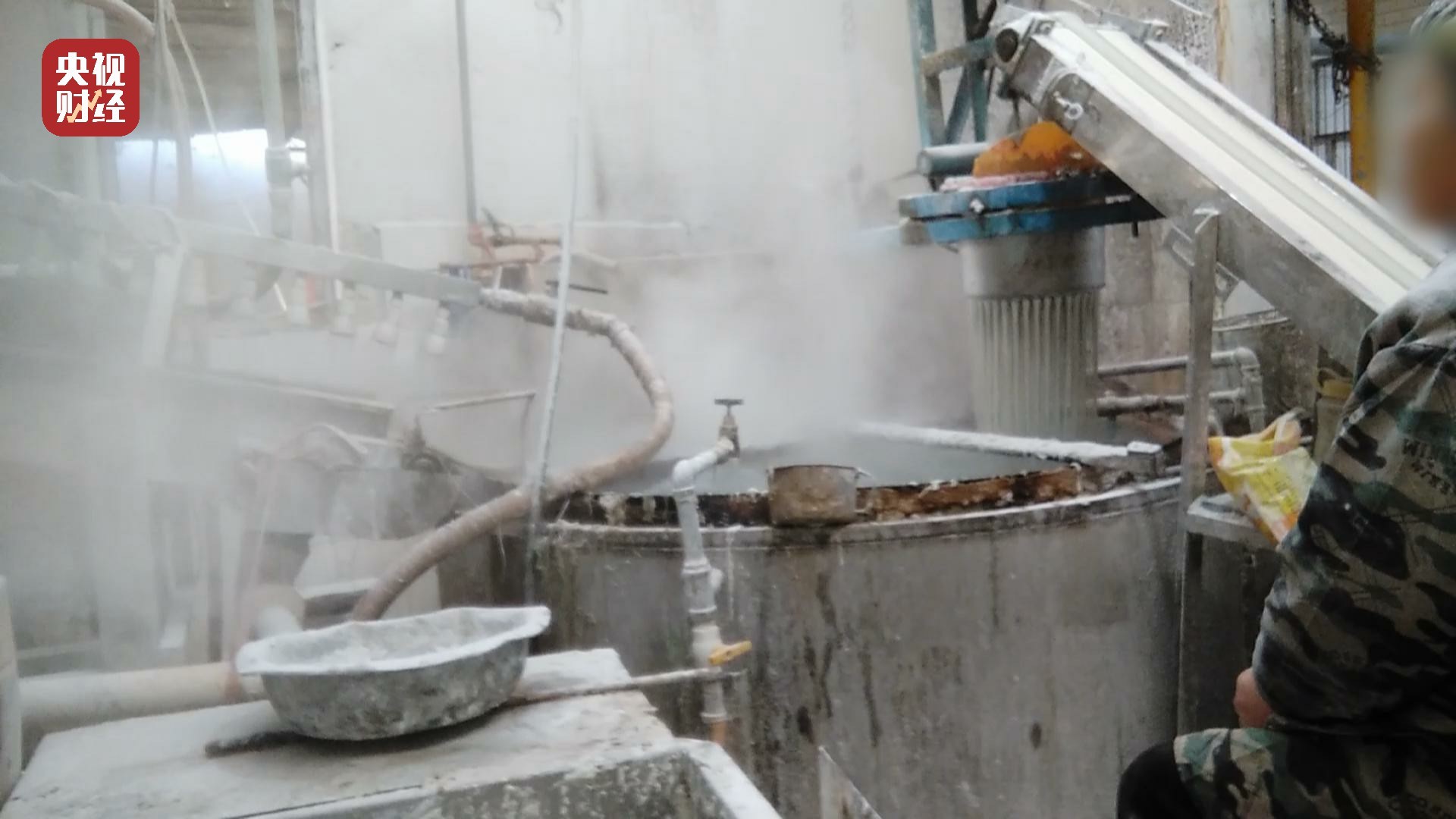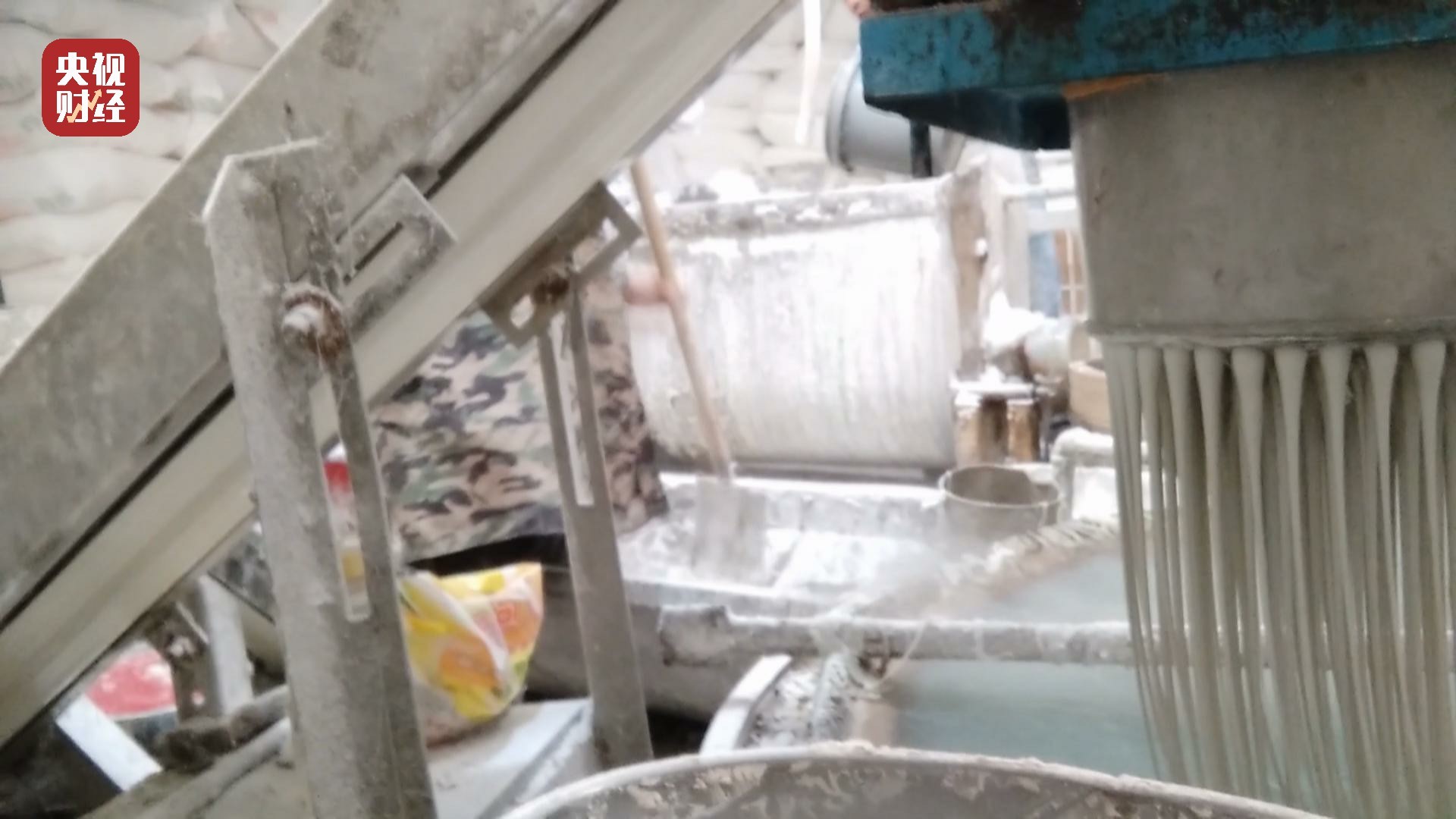 记者看到,工人将生产红薯粉条所用的原料倒在地上,铲进搅拌机。这是什么样的原料?