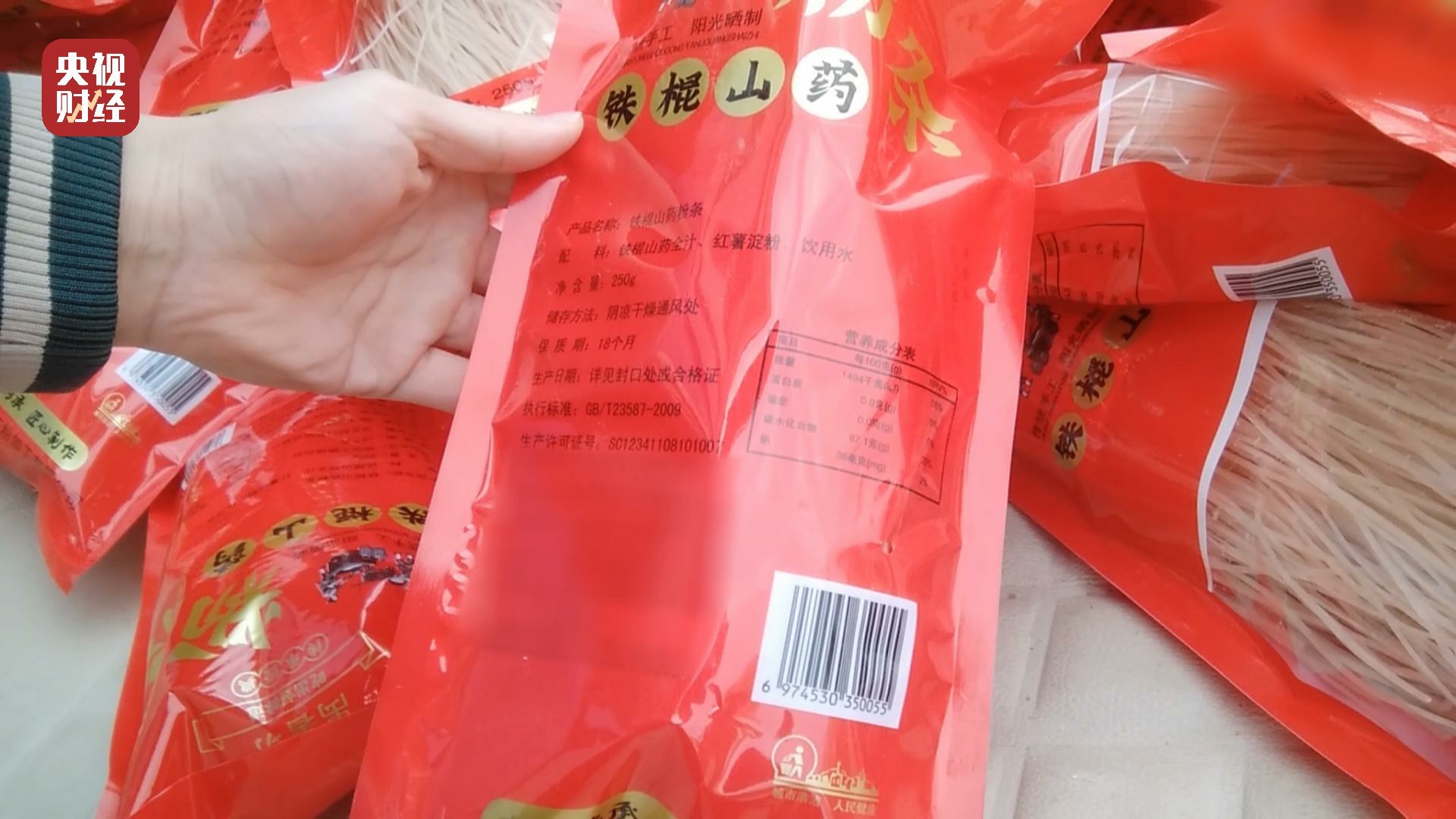 虽然是以木薯粉为主的粉条,包装上却写着“铁棍山药粉条”,并标注配料为“铁棍山药全汁、红薯淀粉、饮用水”。