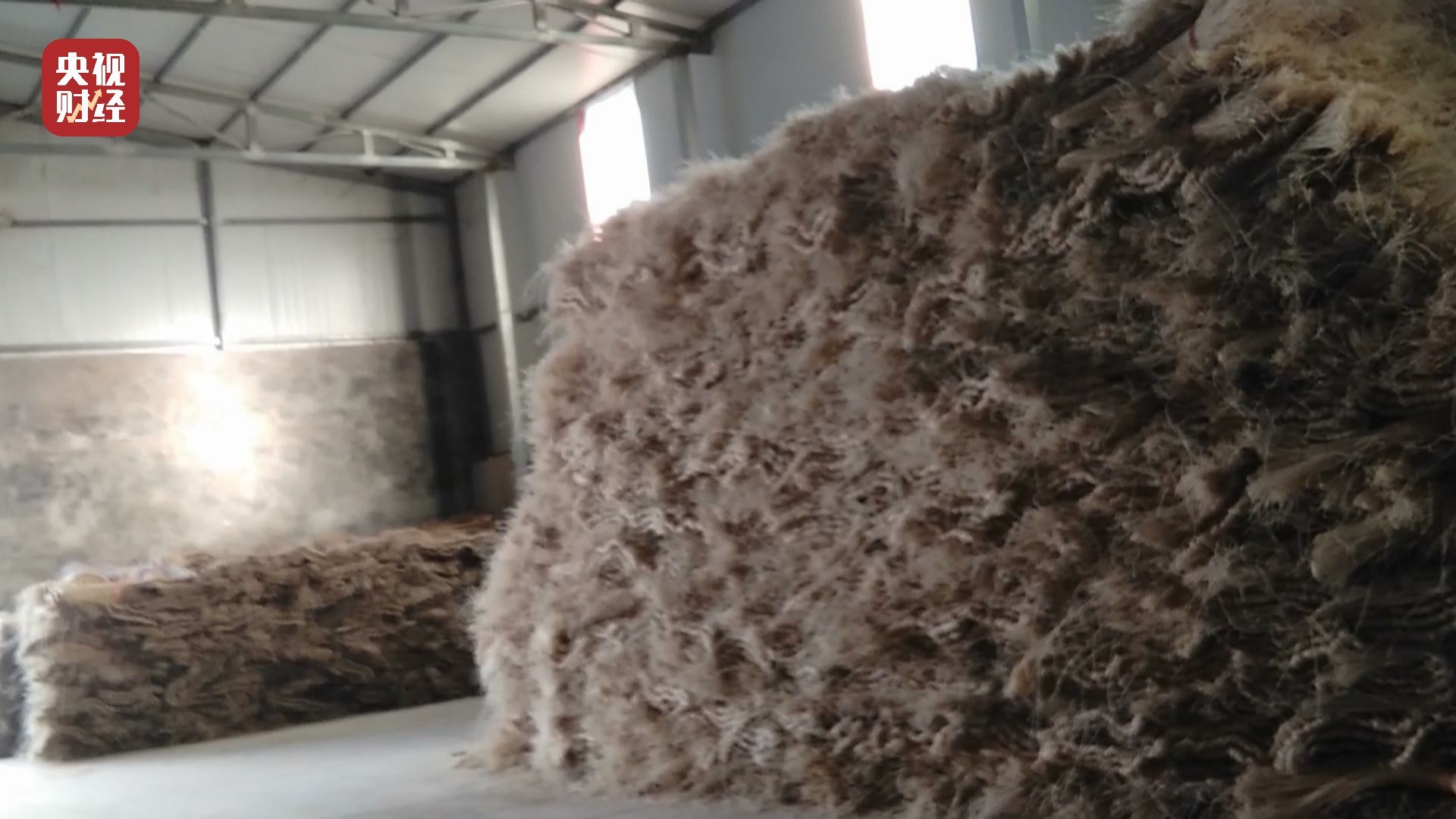 走进一个仓库,密密麻麻的粉条直接堆放在地上。