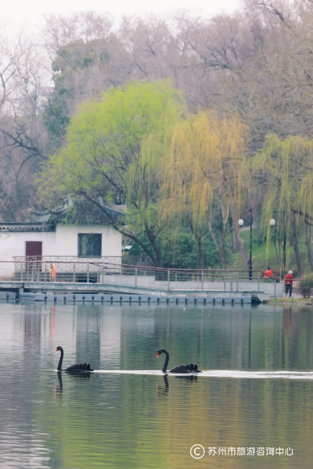 位于古城区相门和娄门之间的东园,是古城区建园较早、面积最大的城市公园,这里还曾经是原苏州动物园的一部分,收藏了无数苏州小囡的童年美好回忆。原苏州动物园搬迁后,东园经过两年的改造,已成为集休闲、娱乐、运动为一体的科技性、公益性、开放性公园,以崭新的面貌向市民游客免费开放。时逢春天,细雨和暖阳交叠,整座东园仿佛被镀上了一层温柔的滤镜。碧水净空、桃红柳绿、落英缤纷,让人沉浸在一派美好的景象之中。春游东园,许多人都被园中的两种颜色——“黑”与“紫”所吸引了。