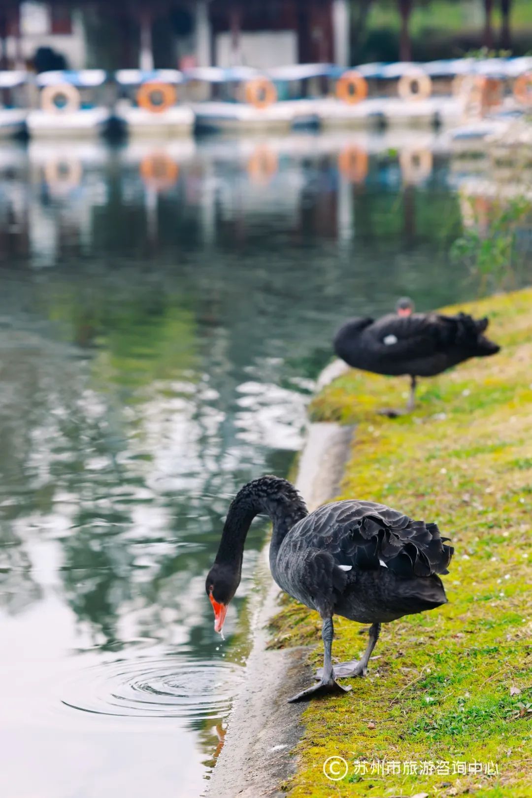 东园里的那片湖水很美,而更美的是湖面上游弋的黑天鹅,东园里的“黑天鹅家族”不断繁衍后代,每年都添新丁,一直以来颇受苏州市民的喜爱。黑天鹅在东园优美的生态环境中,享受着自在惬意的“苏式生活”,时而在湖面戏水,时而在岸边栖息,时不时还会和游客互动一下,是东园内一道灵动的风景线。