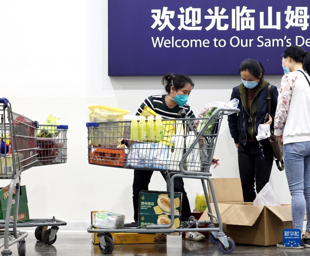 5月2日,顾客在位于上海市浦东北蔡镇的山姆上海浦东高科西路会员店清点商品。