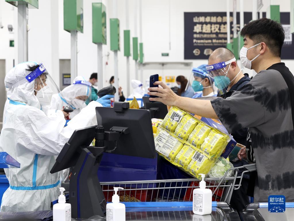 5月2日,顾客在位于上海市浦东北蔡镇的山姆上海浦东高科西路会员店扫码付款。