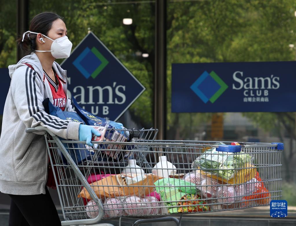 5月2日,顾客从位于上海市浦东北蔡镇的山姆上海浦东高科西路会员店前走过。