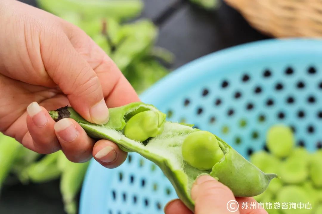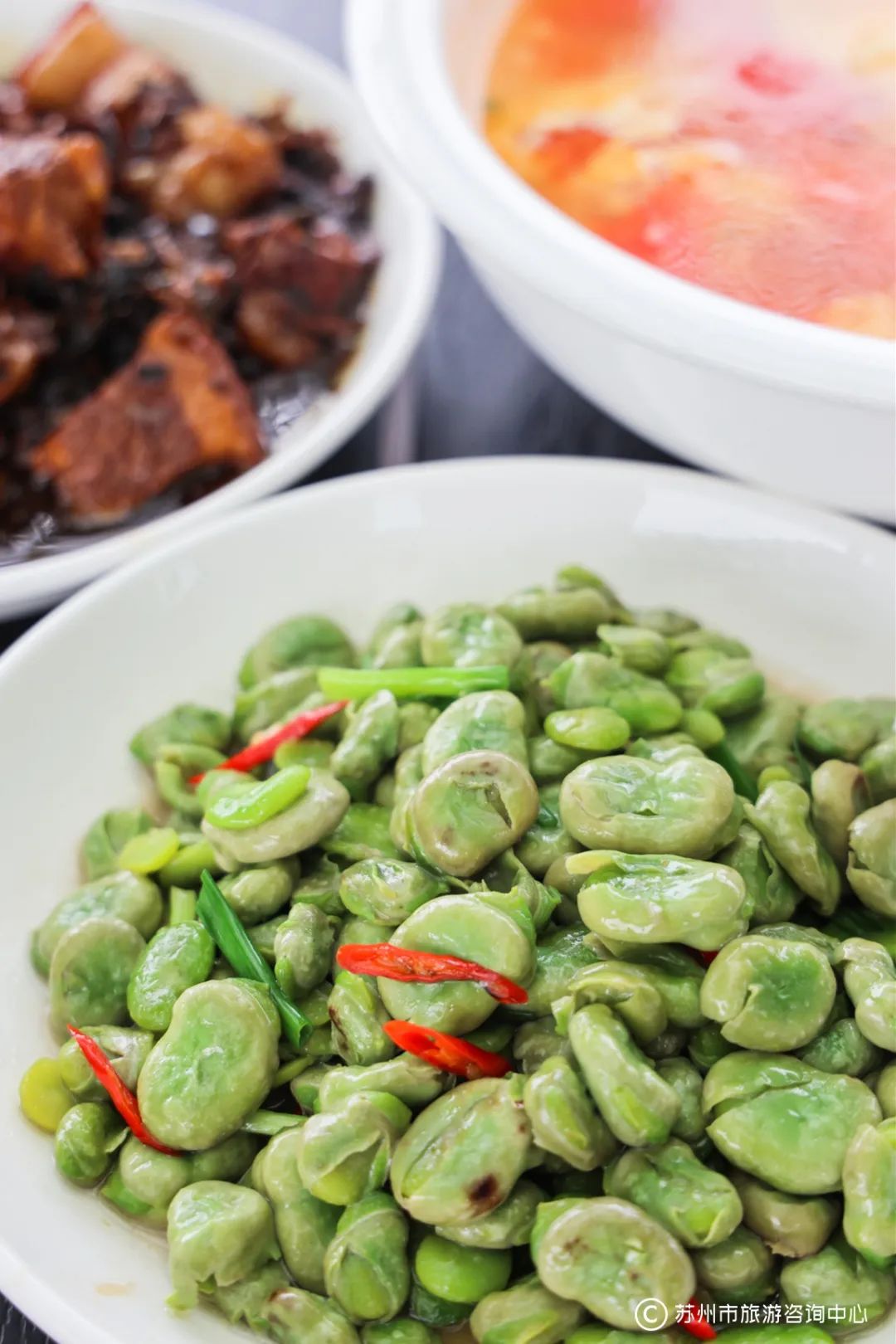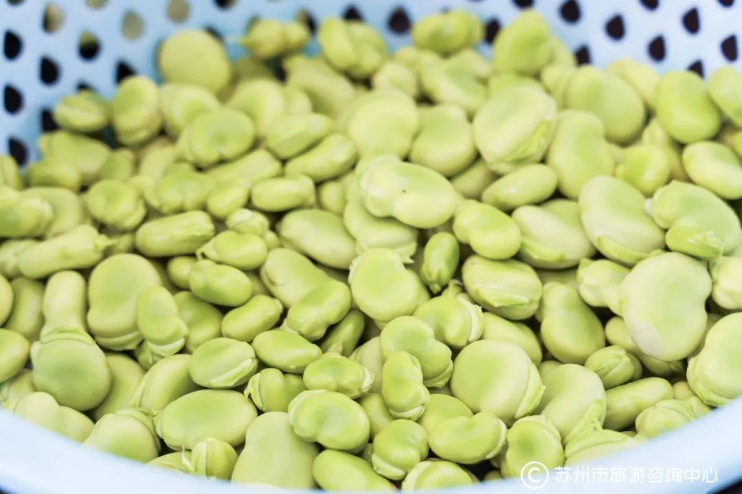 “煮而食之,可忘肉味”,五月初是苏州本地蚕豆最好吃的时候。刚上市的蚕豆皮薄、软糯,一抿便脱壳,甚至嫩到可以连壳一起吃。苏州人做蚕豆,只要一点盐和一把葱花,清炒一下,便是至简本味。