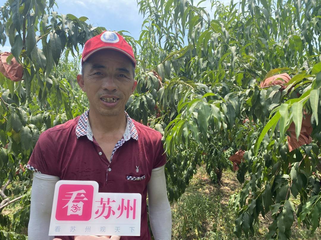 “‘修枝’就是保留主要结果子的枝干,把没有用还要吸收营养的枝干剪掉;‘套袋’就是我们镇湖的每一个黄桃都会套上一个纸袋,来避免阳光直晒,这样结出来的桃子颜色就很均匀;‘疏果’的意思是,比如说一个枝头结满了桃子,但是这个枝头能吸收的养分是一个固定值,所以专家就会建议果农把长势差一点的桃子摘掉,保障其他的几个桃子能够长的个大饱满。”赵林松对记者说道。