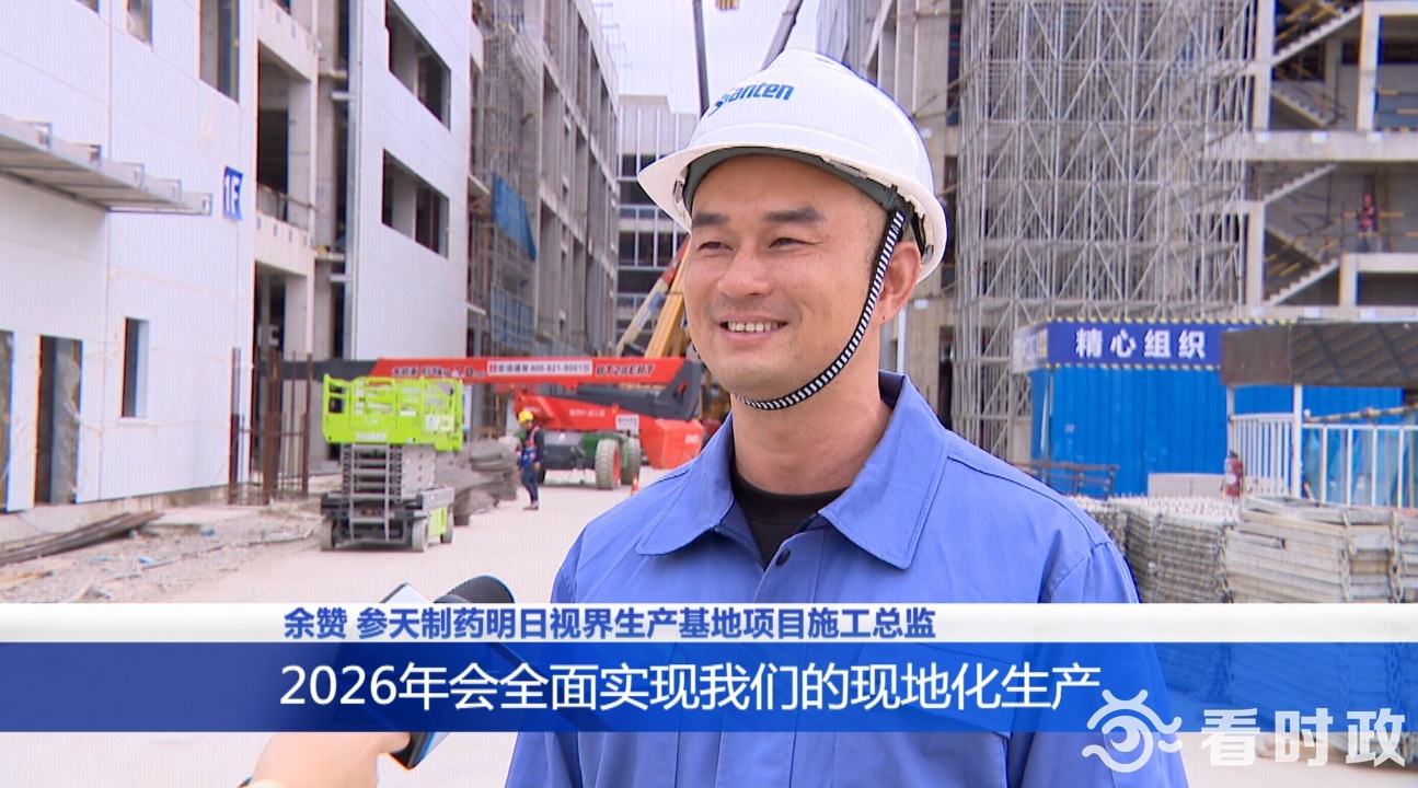 在参天制药明日视界生产基地的施工现场,从去年8月开工建设以来,短短一年多的时间,这里已经完成了封顶工作,项目建成后,建筑面积将达到12.6万平方米,也将成为参天集团在全球产能最大的眼科制药基地。