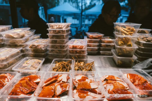 苏州人过冬至夜总得有七八碟的冷盆开道,于是冬至夜当天,苏州大大小小的卤菜店前都会排起长长的队伍。