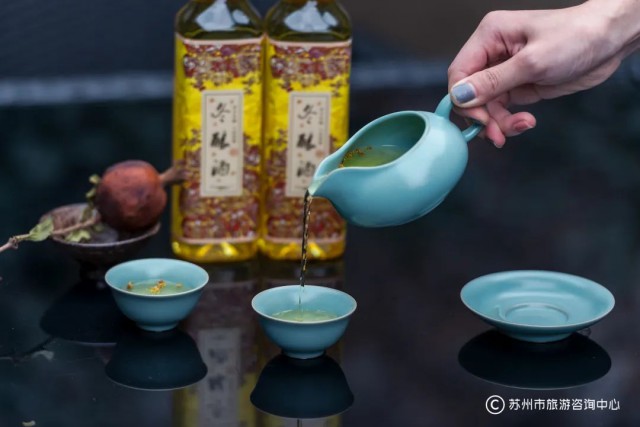 冬酿酒是苏州特有的冬令佳酿,专为苏州人的冬至夜准备,度数低(5度以下),味微甜,酒中掺有细小的桂花花瓣,开瓶后散发出馥郁的桂花芬芳,这款酒一年仅酿一次,一次仅售一个月。