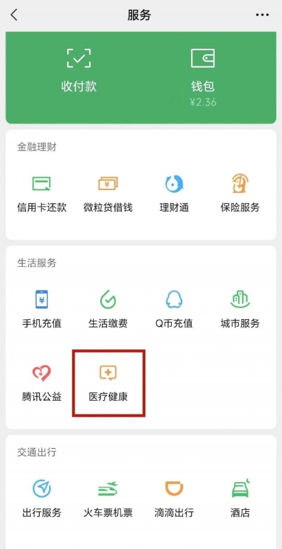 03、点击微信 ——服务——医疗健康 搜“医保电子凭证”