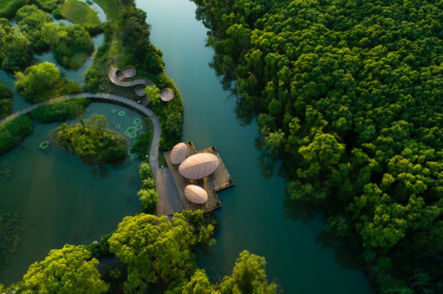 在高楼林立的长三角城市群里藏着一块难得的生态保留地——昆山天福国家湿地公园,这座湿地公园地处太湖流域,吴淞江水系,总面积780公顷,湿地率达63.62%,但是在23年前,这里还是一个被铁路、高速等各种交通要道分割于“井”字之中的破败村落——天福村。