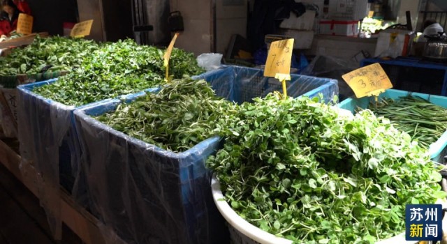 枸杞头是未结果的枸杞的嫩芽,是苏州人爱吃的“七头一脑”之一。枸杞头从上市到落市时间极短,产量低,每斤售价在12元左右。除了时鲜“春菜”,各种时令水产也开始陆续上市。