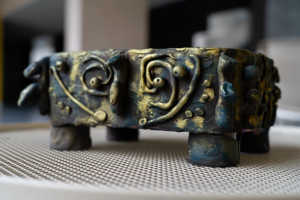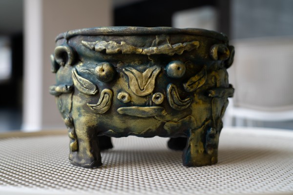 此次展出的青铜器作品全部由学生们亲手打造,不仅重现了青铜器的古朴厚重与精美绝伦,更融入了学生们对历史文化的理解与创新。他们尝试将现代元素与传统工艺相结合,创造出既具有古典美感又不失时尚气息的青铜器作品。