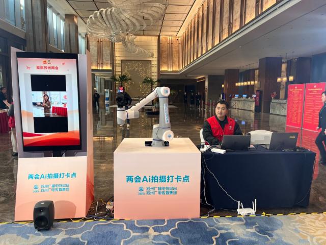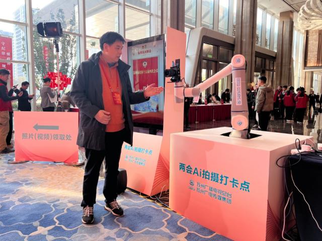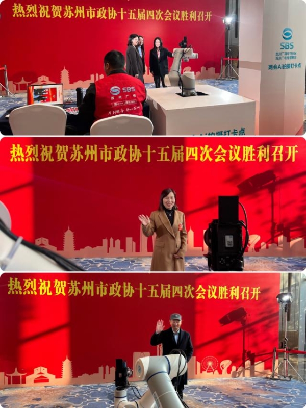 值得一提的是,扫描出来的视频通过AI剪辑合成后,自带音乐、片头、片尾等,包括机械手臂的构图运镜,整套系统均由苏州广电技术研发,并且首次在两会亮相。(记者:矫荷)