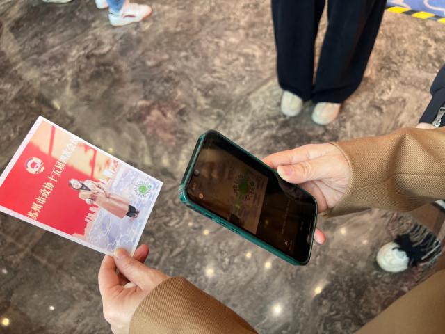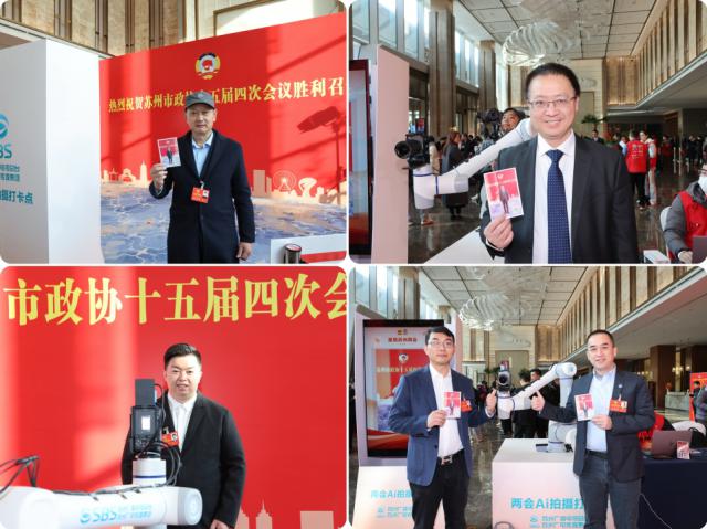 今天(1月11日),政协苏州市第十五届委员会第四次会议将正式召开。上午,政协委员们向大会报到。报到席的右手边,苏州广电总台两会AI拍摄打卡点人气十足。