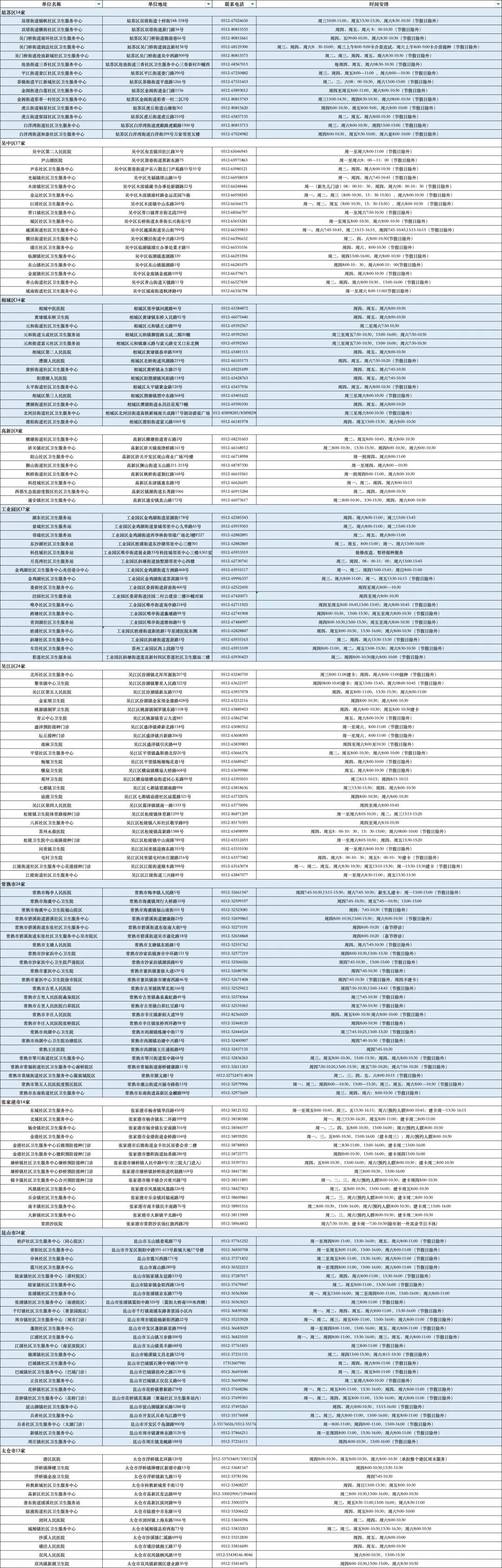 苏州市儿童预防接种门诊公示