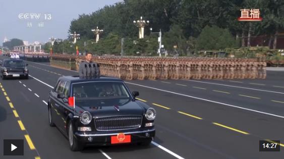 在雄壮的军乐声中,习近平乘车沿着宽阔的长安街,依次检阅徒步方队和装备方队。