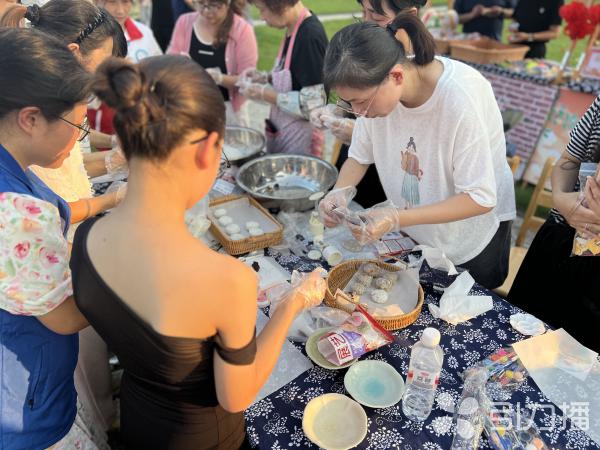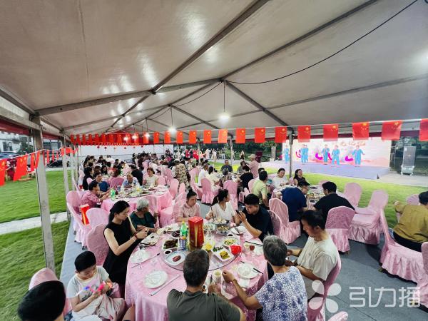 天色渐暗,百家宴准时开席。葱椒大排、红烧蹄膀、清蒸鳜鱼、鲜肉月饼……一桌桌热气腾腾的菜肴整齐摆放,香气扑鼻。乡亲们围坐在一起,边尝美味边唠家常,桌上不时传来阵阵笑声。“这蹄膀炖得真酥烂!”“来来来,再给你夹一块鱼。”“你家孙女长这么高啦!”几句热络的家常话,就拉近了彼此的心。孩子们举着小兔子灯绕着桌子跑闹,长者们边吃边聊,时不时举杯共饮,喜悦之情溢于言表。有人感叹:“百家宴吃的是菜,暖的是心!”那一刻,“百家成一家”的温情氛围在笑声与碰杯声中升腾开来。