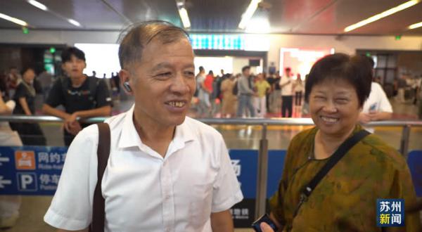 在苏州火车站,来自丹阳的徐师傅、张女士带着大包小包赶来苏州,和儿子儿媳一起过中秋。