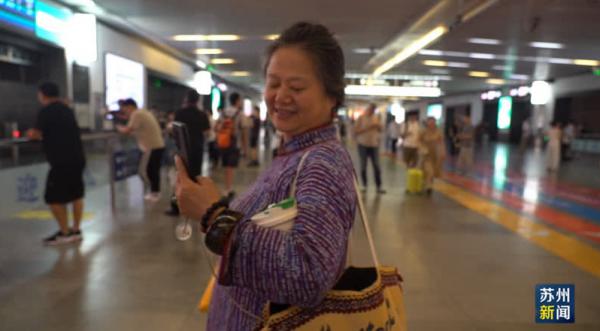 除了大包小包返回苏州的本地人,还有不少外地人特地到苏州过节。出站口,记者遇到一位身穿旗袍,精心盘着发的女士,她是一名渝派旗袍手艺人,来苏州是为了参加“丝绸苏州2025”十周年特展。
