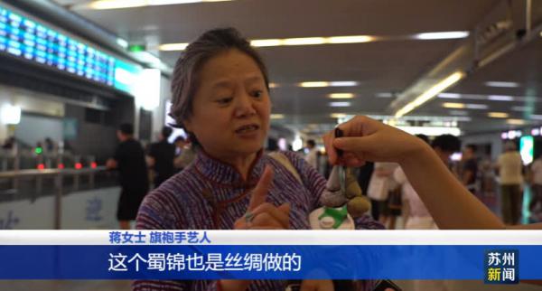 旗袍手艺人蒋女士表示,蜀锦也是丝绸做的,苏州也是出丝绸的,所以能参加丝绸展是一种荣幸,这个中秋节很有意义。