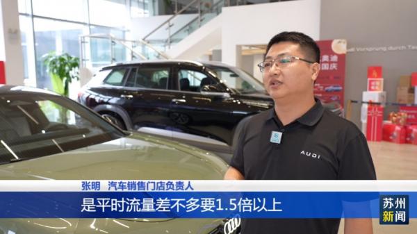 汽车销售门店负责人张明介绍,是平时流量差不多要1.5倍以上,交车的节奏也比较快,交车多的时候一天也要十几台车的交付量。