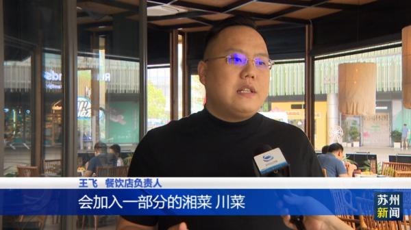 餐饮店负责人王飞介绍,有350个餐位,在户外准备了60多把椅子,还有饮品和及时的服务,做餐饮希望满足更多客人的用餐需求,比如说店里面会加入一部分的湘菜、川菜,能让顾客有多样性的选择。