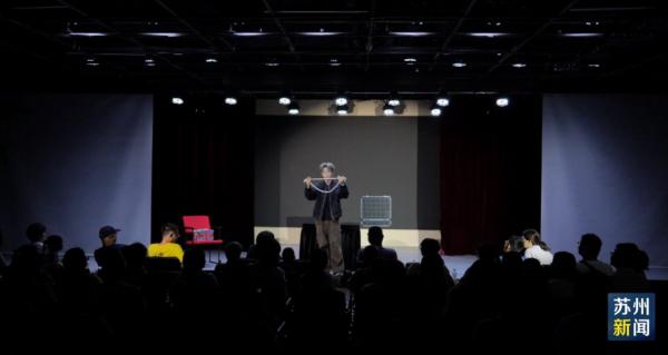 苏州文化艺术中心 “大珍珠”的国风剧场,互动魔术秀《东西派》舞台上,魔术师通过幽默风趣的语言结合着不同的道具,在手指变换间就完成了一次又一次魔术表演,引得阵阵掌声。台下观众们看得认真,互动更是积极,从主动验证道具到亲身参与体验,每个人都沉浸式感受这场东西方魔术交融的奇幻之旅。