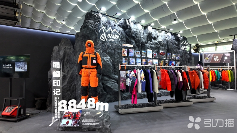 此次展览以模拟DNA的双螺旋结构为核心串联脉络。“一条是‘To B 科技螺旋’,一条是‘To C 体验螺旋’,二者如同基因链般相互缠绕、协同演进,构建起‘科技为骨架,时尚为肌理’的体验式复合空间,共同为户外运动产业赋能。”展览策展人、上海国际时尚教育中心数字时尚学院院长金宏渊介绍道:“我们特意模糊了室内与户外的物理边界,通过光影、声效、材质搭配与空间布局的巧妙设计,模拟出从城市绿地到山地旷野的场景过渡体验。参观者脚下可能是仿若山间小径的碎石质感,耳边会掠过经过科技处理的自然风噪与鸟鸣声,空气中还弥漫着雨后草木的清新香氛。”