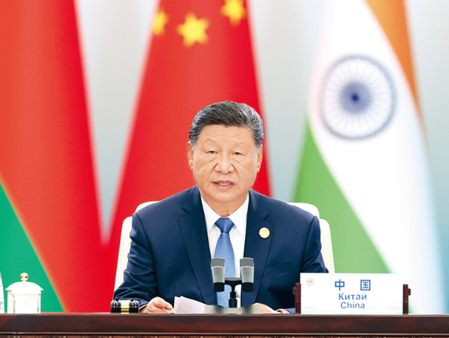 2025年9月1日下午,“上海合作组织+”会议在天津梅江会展中心举行。国家主席习近平主持会议并发表题为《凝聚上合力量 完善全球治理》的重要讲话。 新华社记者 黄敬文/摄