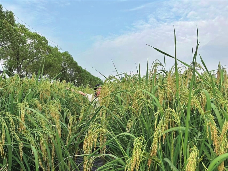金秋时节,走进张家港经开区(杨舍镇)南新村的稻麦丰产示范方,一片特殊的稻田跃入眼帘:稻株茁壮挺拔,高度普遍超过两米,置身田间仰头方能望见穗尖;若孩童钻入稻田,瞬间“只闻其声,不见其人”。这片稻田便是南新村已连续试种4年的“巨型稻”。(记者 陈梦娇 张东慧)