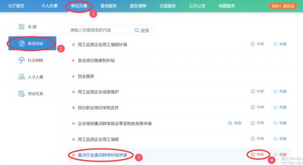 答:补贴需由企业申请,申请期限截至2025年底。登录江苏人社网上办事服务大厅(https://rs.jshrss.jiangsu.gov.cn/index/),点击单位办事—就业创业—重点行业重点群体补贴申请—申报